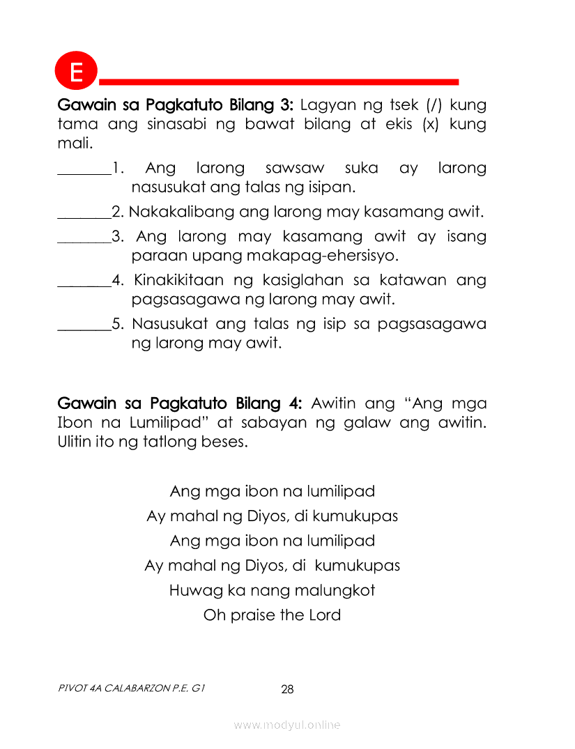 PE 1 Module (Quarter 4)Apr 27, 2021 Grade 1Kiumo M901 Tablet for Kids — comprehensive protection in learning, safety, and entertainment for as low as **₱2,399!. PE 1 4th Quarter PIVOTRelatedPE 1 Module (Quarter 3)Health 1 Module (Quarter 4)Music 1 Module (Quarter 4)Edukasyon sa Pagpapakatao 1 Module (Quarter 4)Arts 1 Module (Quarter 4)